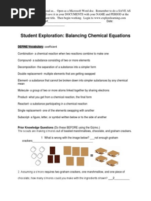 Balancing chemical equations prior knowledge questions . Molecules, but you can change the number of molecules that are used. Answers to gizmo about balancing chemical equations. Balance and classify five types of chemical reactions: How are chemical equations balanced?